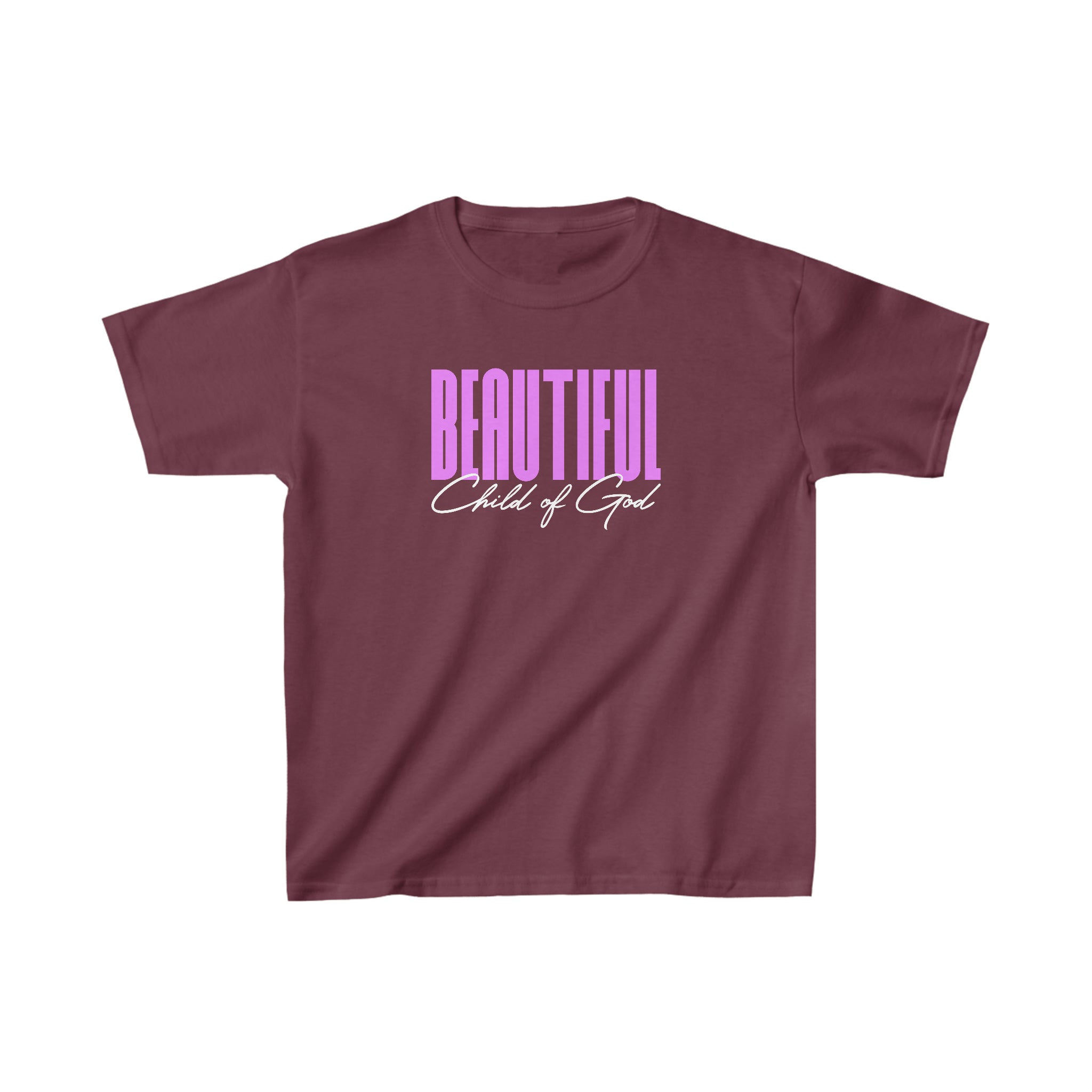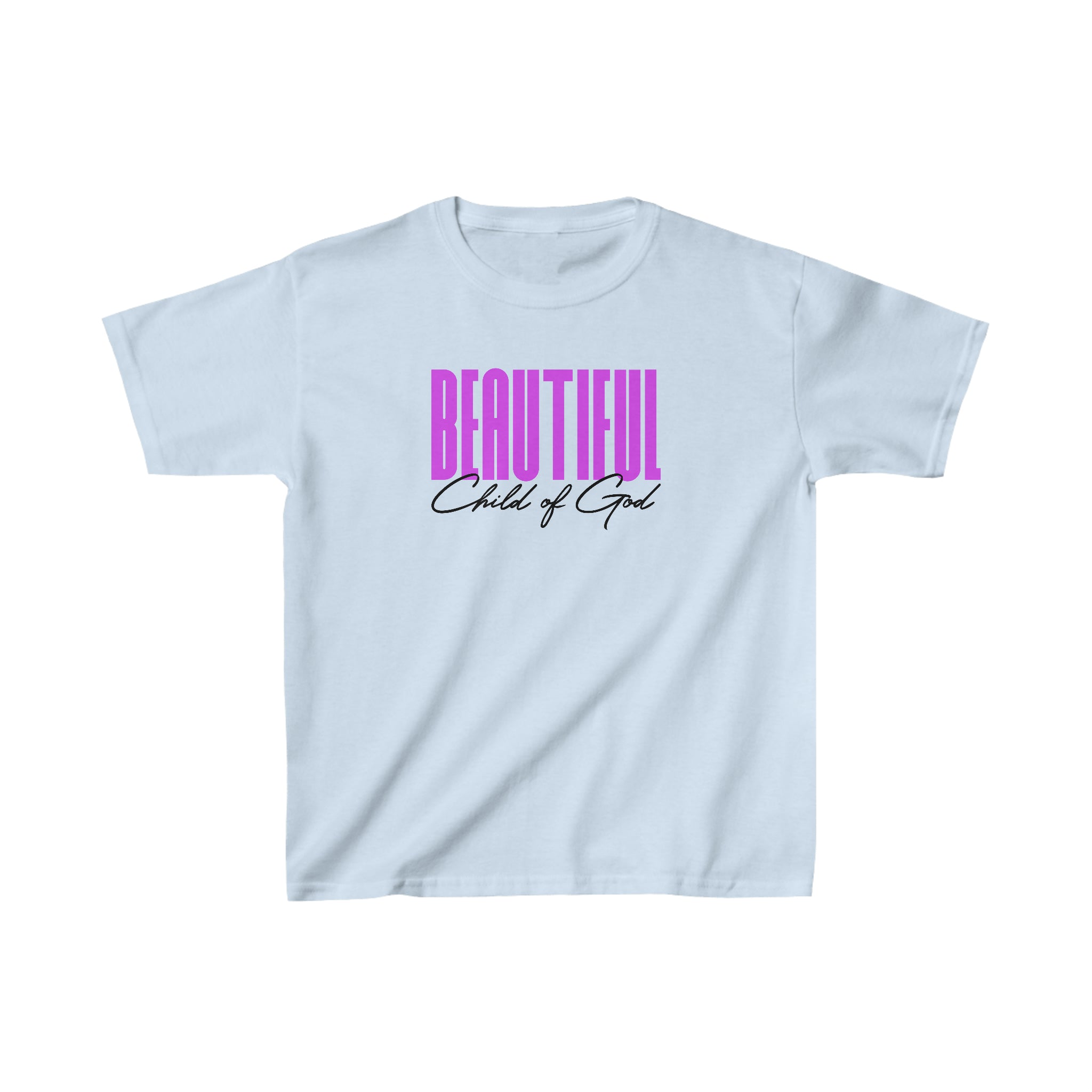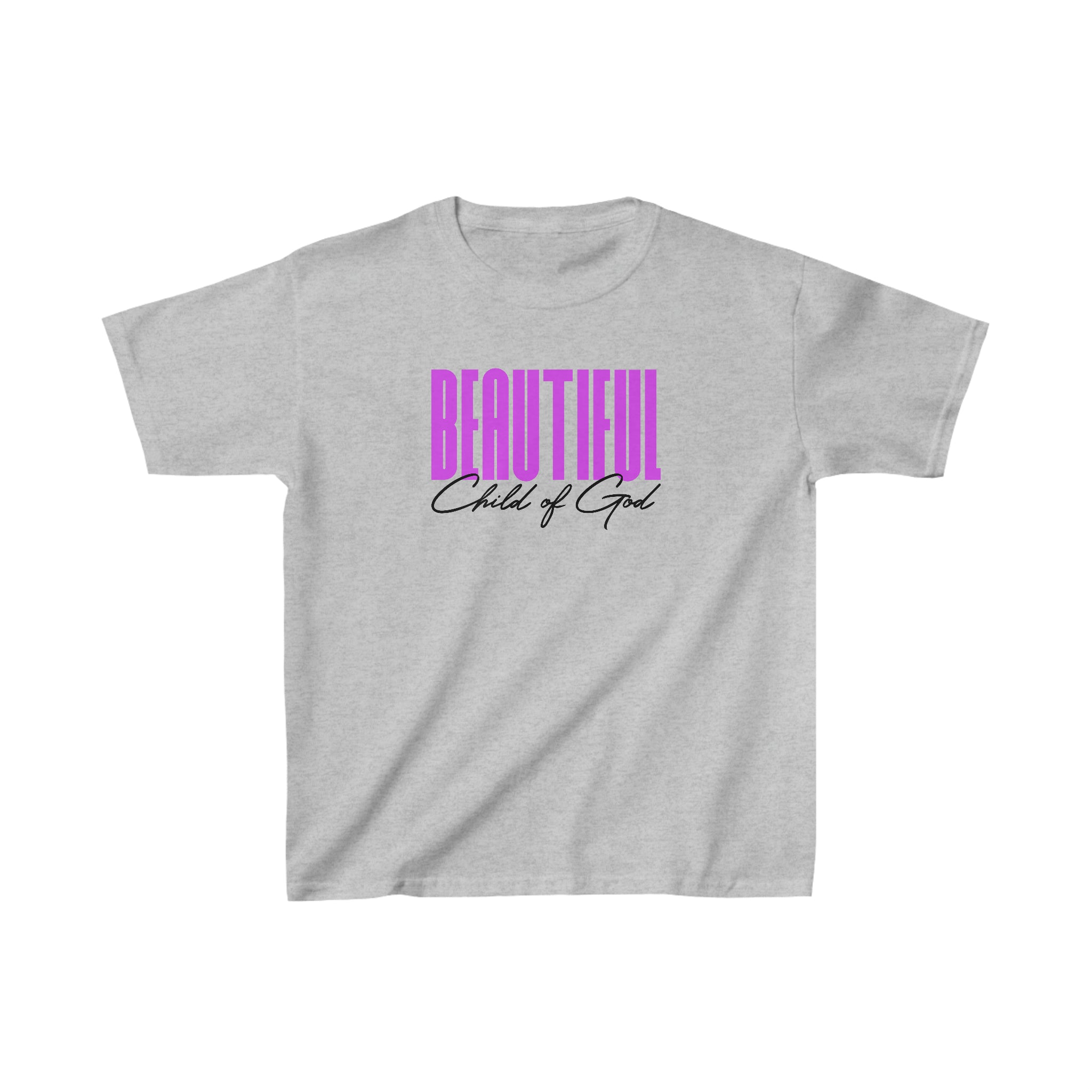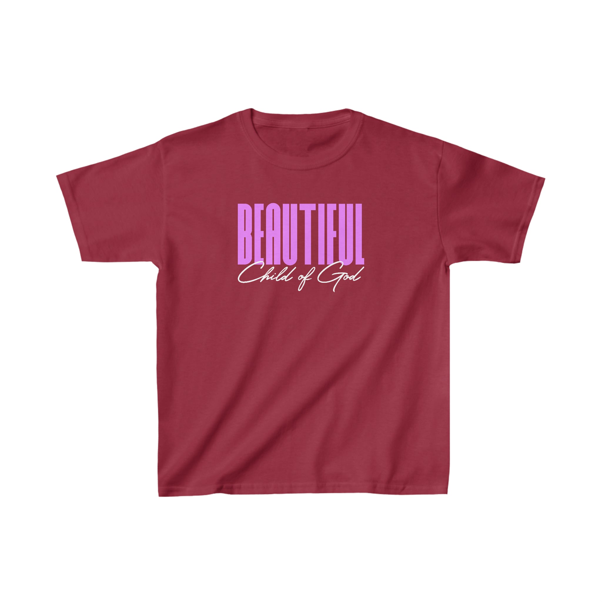 The kids heavy cotton tee is perfect for everyday use. The fabric is 100% cotton for solid colors. Polyester is included for heather-color variants. These fabrics are prime materials for printing. The shoulders have twill tape for improved durability. The collar is curl resistant due to ribbed knitting. There are no seams along the sides.